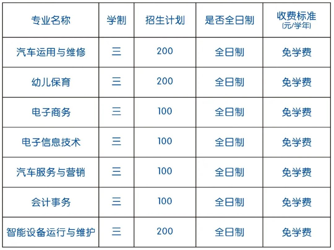 | 汽车运用与维修 | 三 | 200 | 全日制 | 免学费 |