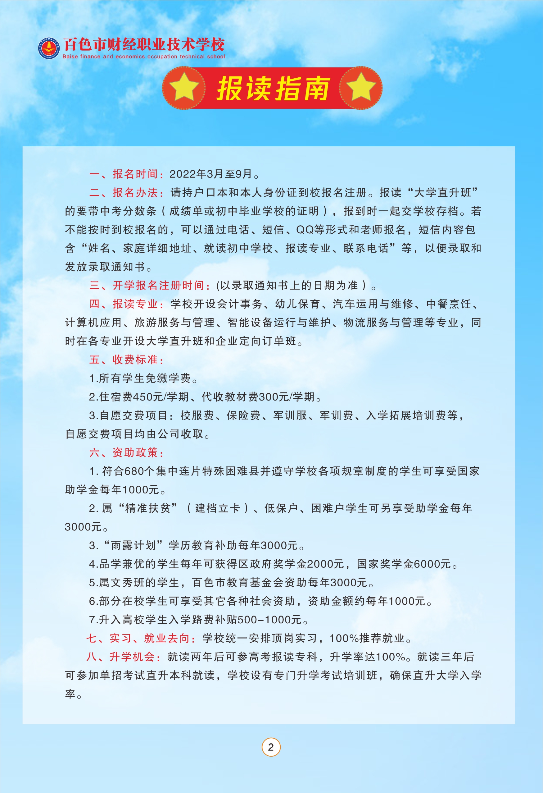 2022年百色市财经职业技术学校招生指南(图)