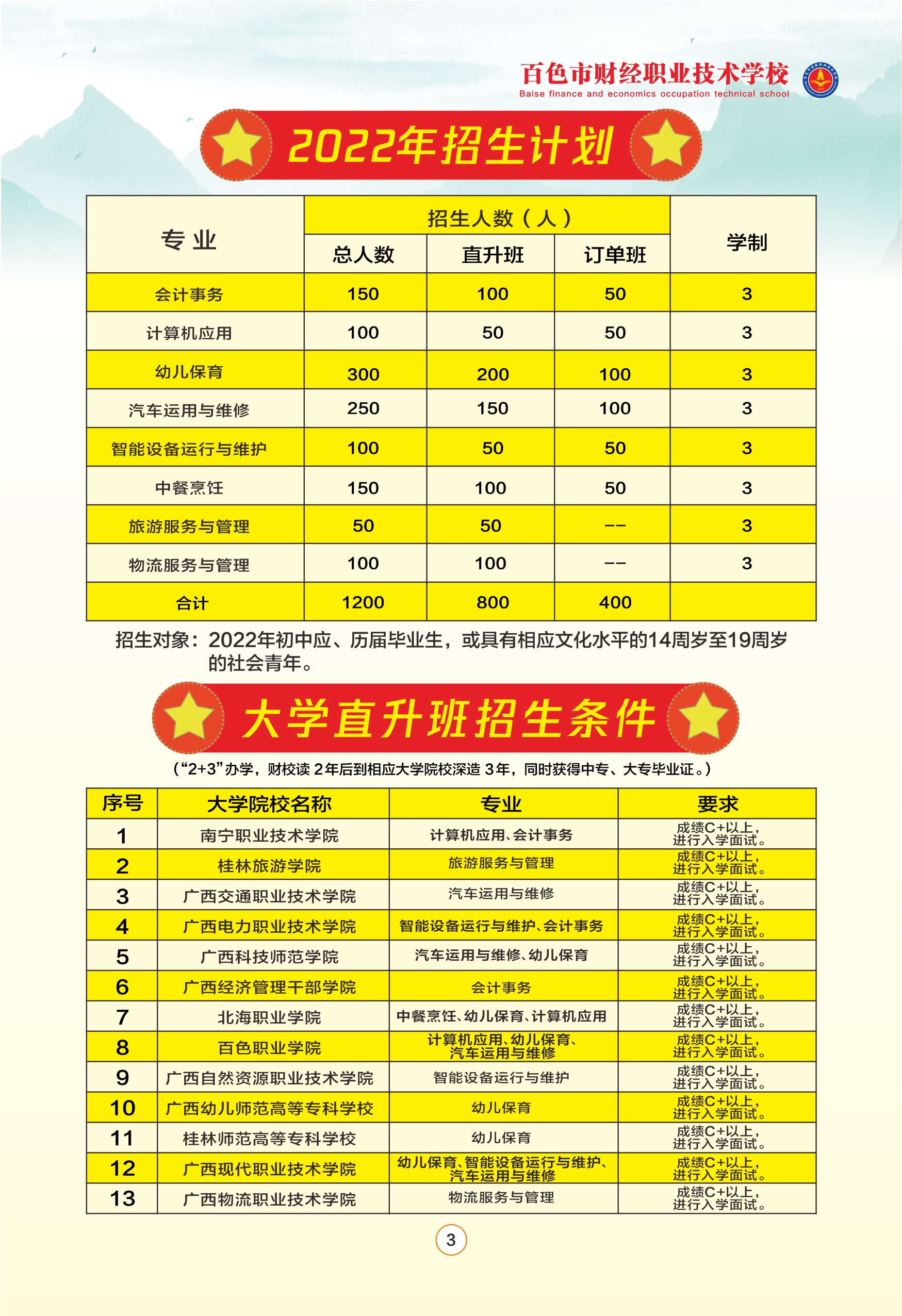 2022年百色市财经职业技术学校招生简章(图)