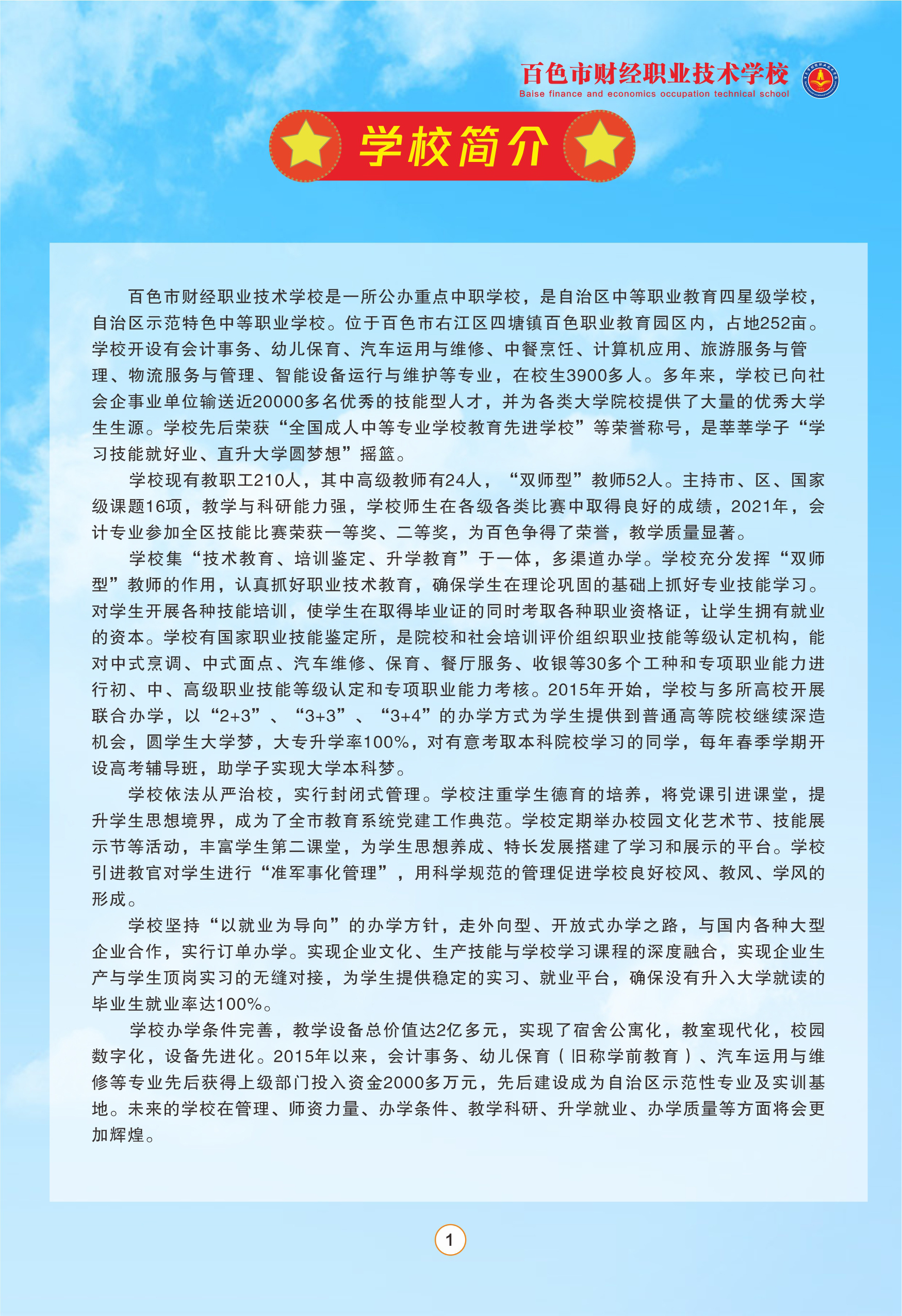 原标题:2022年百色市财经职业技术学校招生指南(图)