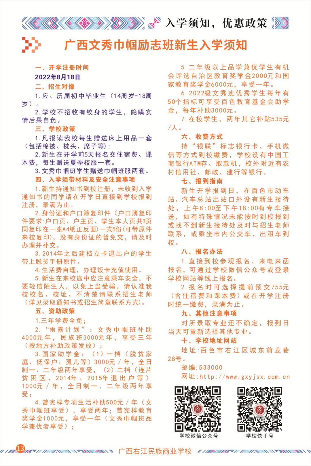 原标题:2022年广西右江民族商业学校广西文秀巾帼励志班招生简章(图)