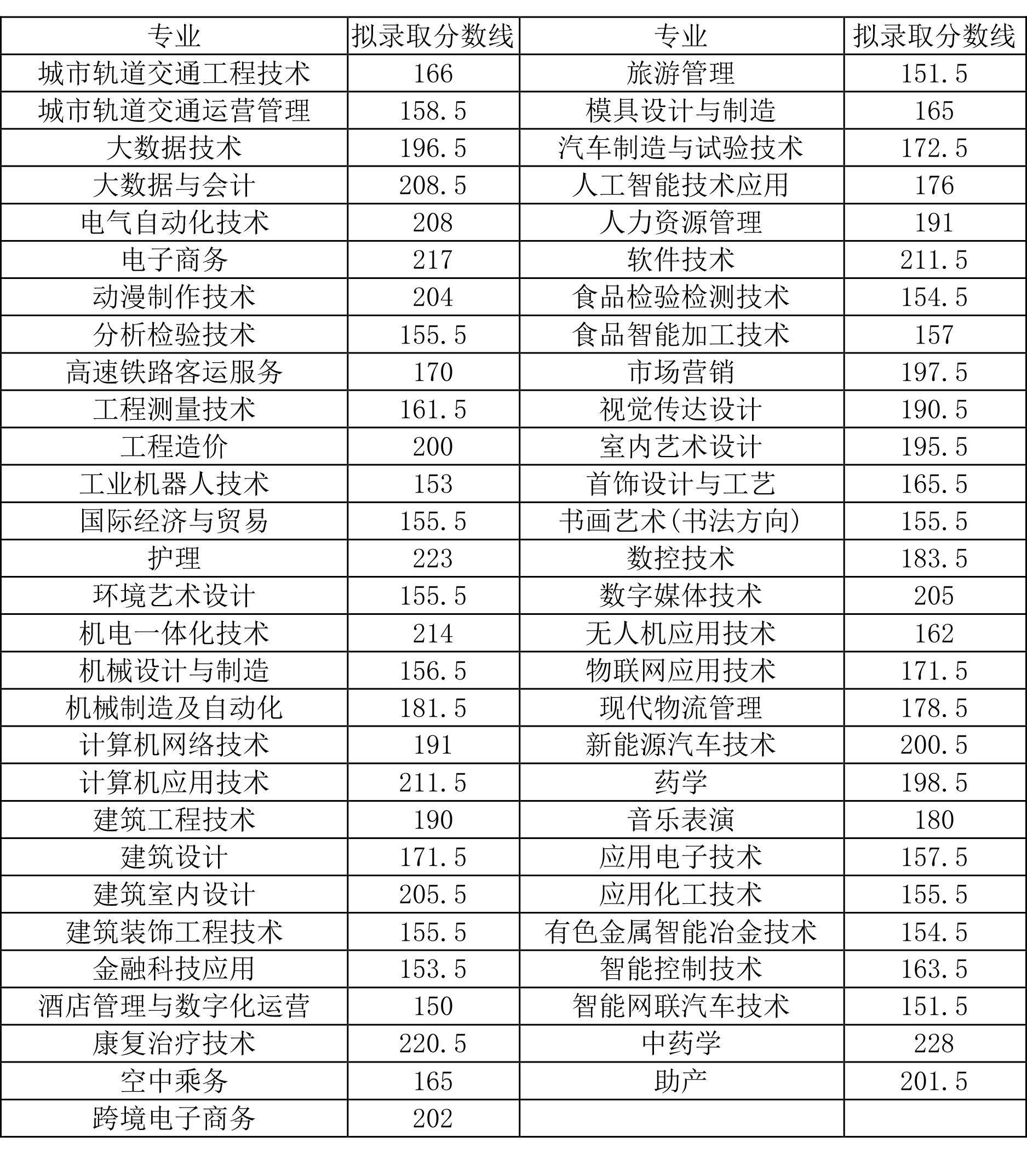 济源职业技术学院2022年单独考试招生拟录取分数线